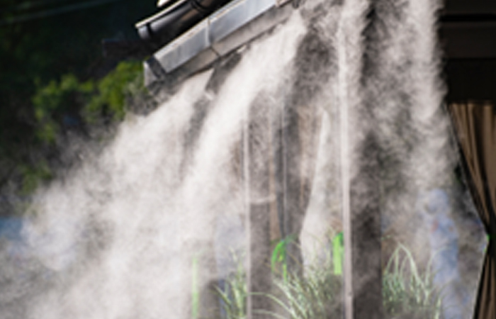 - Evaporative Cooling: Our evaporative cooling systems are specifically designed to lower temperatures in open or semi-enclosed areas such as warehouses, patios, greenhouses, and sports facilities. By dispersing fine water mist, our systems provide natural cooling without excessive energy consumption.